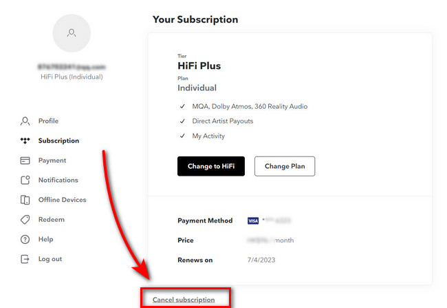 Cancelar la suscripción a través de la web de TIDAL