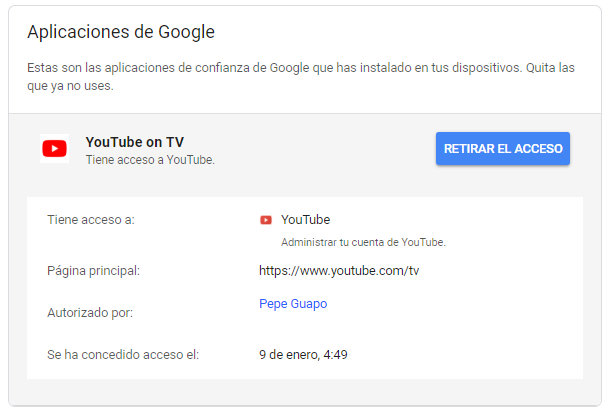 3. Eliminar tu cuenta de Google asociada a YouTube TV