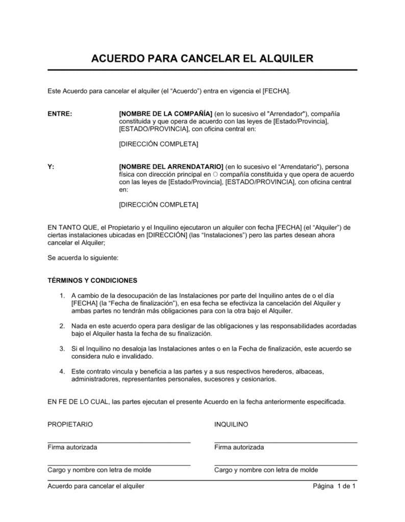 - Acuerdo mutuo por escrito: Es fundamental que ambas partes firmen un documento que refleje la voluntad de rescindir el contrato de arrendamiento.