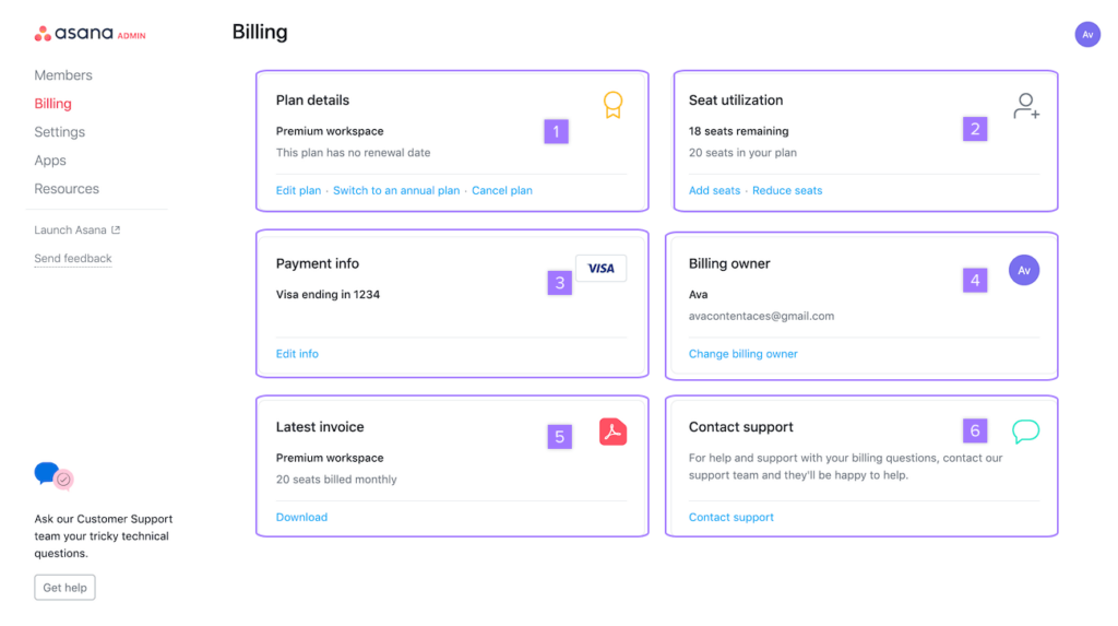 5. Contacto con el soporte de Asana